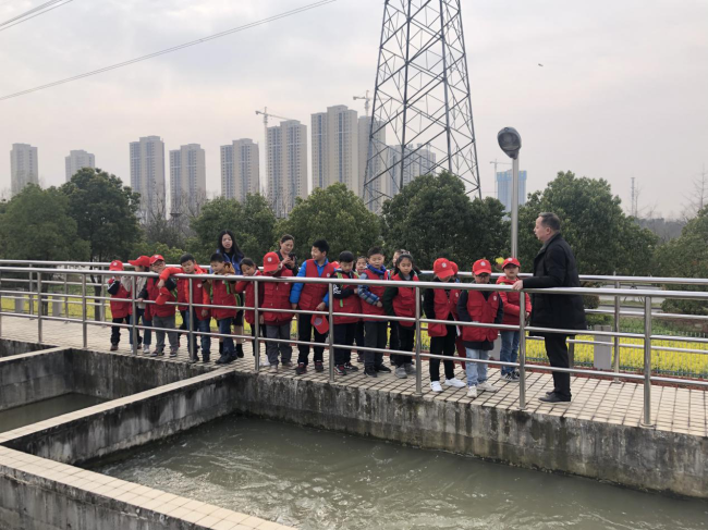 “我們城區(qū)的生活用水來自漢江,大家看看現(xiàn)在水池中水的顏色,我們接著往下參觀……”在公司三水廠工作人員的帶領(lǐng)和介紹下,小記者們看到了處理前的原水。由于他們大多是第一次參觀自來水廠,對(duì)每一步工序、每一處管道、每一種儀器都充滿好奇。他們有的在不停追問,仔細(xì)探究水處理過程中的每一點(diǎn)細(xì)微變化;有的認(rèn)真做著記錄,若有所思,與家長(zhǎng)和同學(xué)進(jìn)行探討。